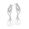 14KW Freshwater Pearl Earring- 7.5-8mm- .12ct tw of Diamonds