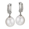 14KW White South Sea Pearl Earring-13-14mm- .09 ct tw